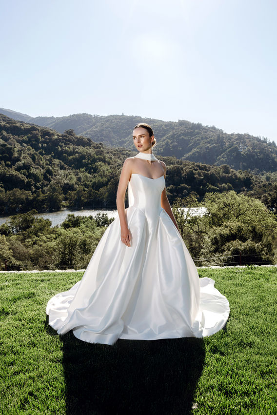 Mikado gown with structured bodice.